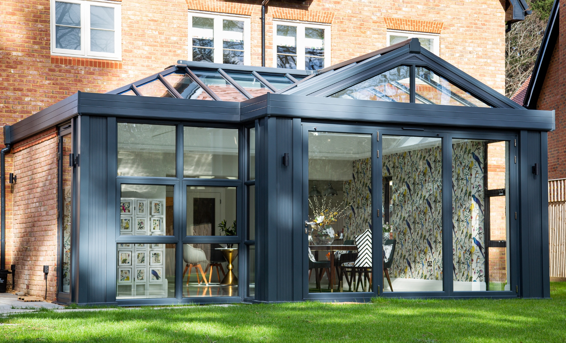 Stunning Orangery Designed For Reading Family By The Abbey Windows Double Glazing Team.Abbey Windows have recently completed an Orangery installation with Origin Bi-Fold Doors for a family in Reading and the results are spectacular.Our customers wanted to create more space towards the back of their property and to open up their living area. They also wanted to make full use of their garden in the summer months.